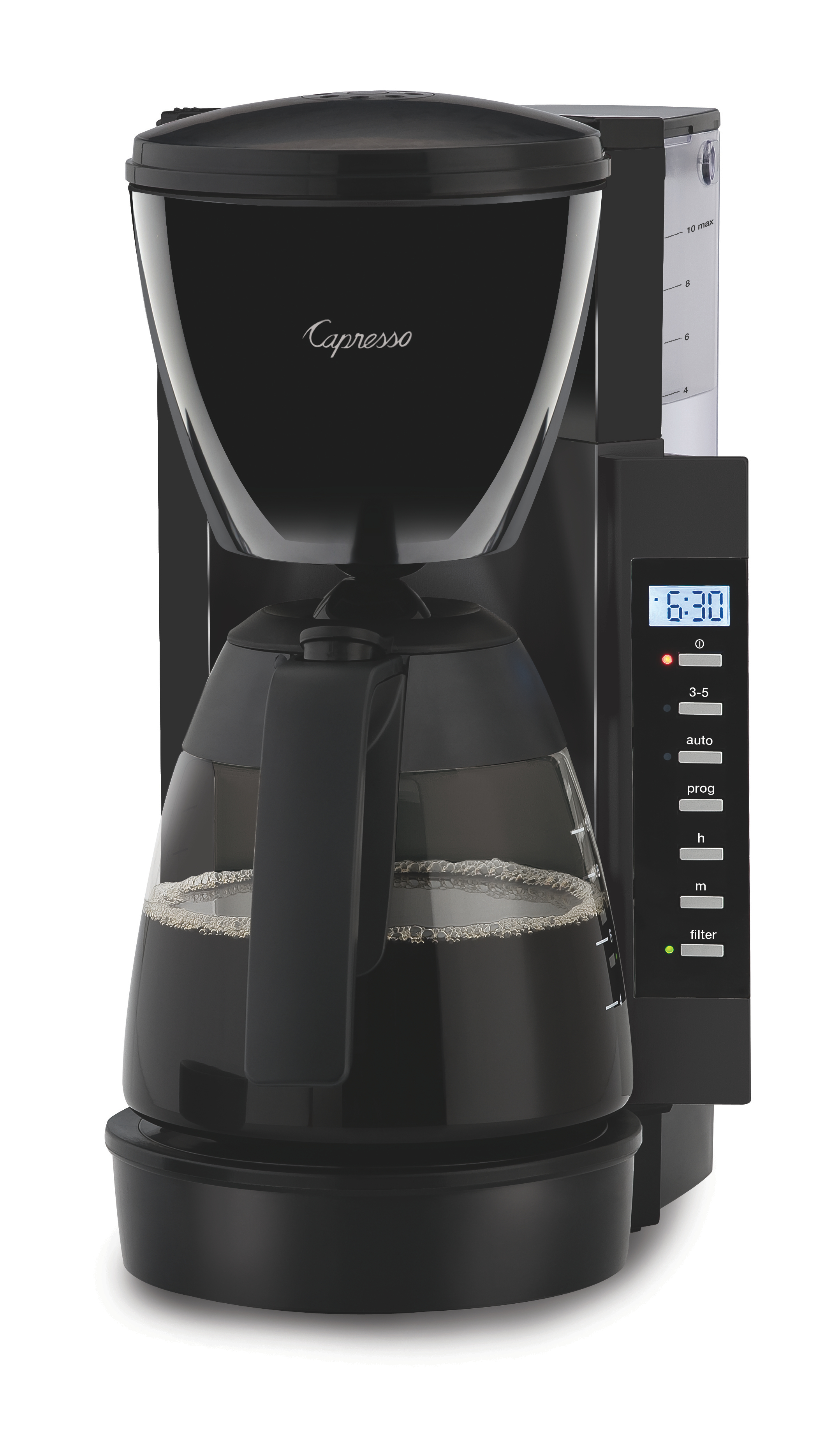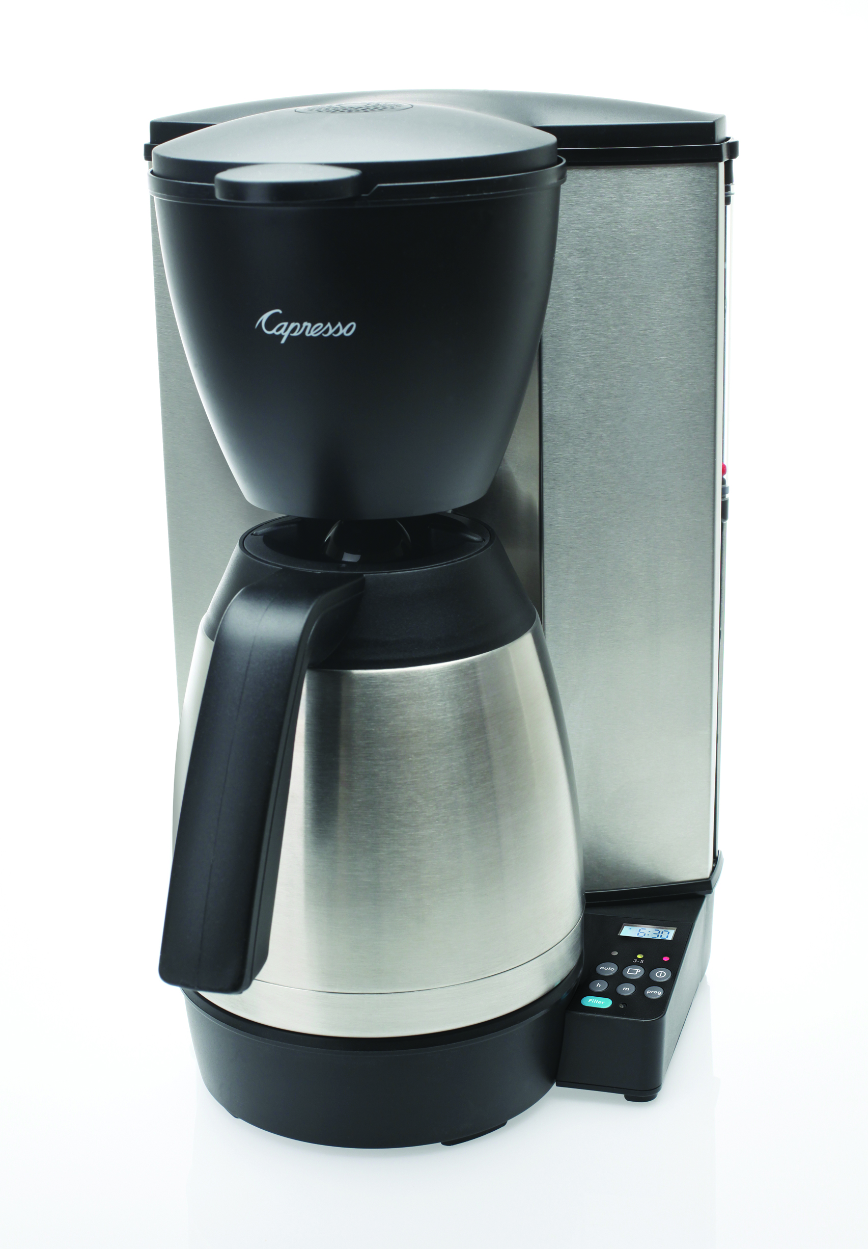 The rapid brewing Capresso MT600 PLUS 10-cup coffee maker can be programmed to brew your morning cup of joe while you get ready for your day. Its stainless steel vacuum carafe keeps coffee hot for up to 4 hours making it ideal for households with multiple coffee drinks on different schedules.