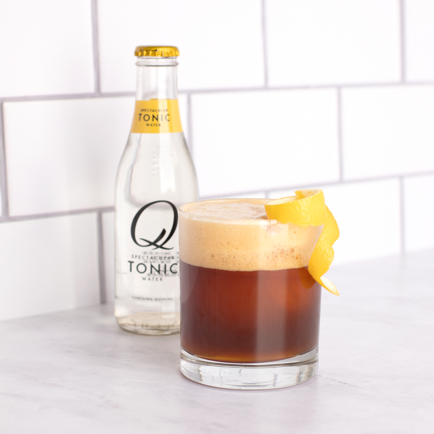 Brew one shot of espresso with any Capresso espresso machine. Pour the espresso into a glass over ice and add in your tonic water and simple syrup. Slowly stir until all ingredients are combined. Garnish the glass with the peel from one lemon. Lastly, enjoy.